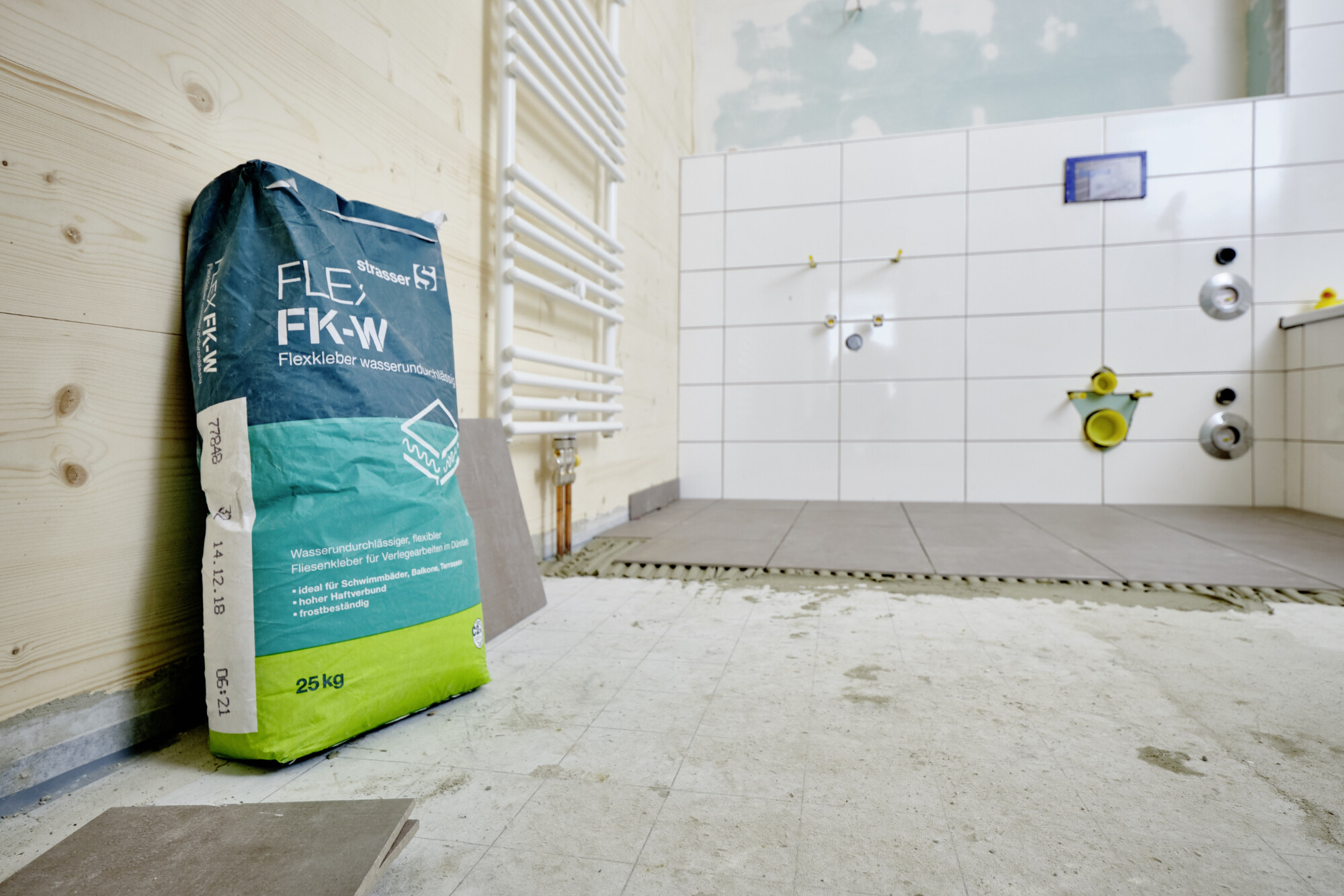 Alles, was der Fliesenleger braucht: Grundierungen, Estriche, Ausgleichsmassen, Fliesenkleber, Fugenmörtel, Abdichtungen, Dichtstoffe, Zubehör und Werkzeuge. Aber mit System. Dafür steht strasser.