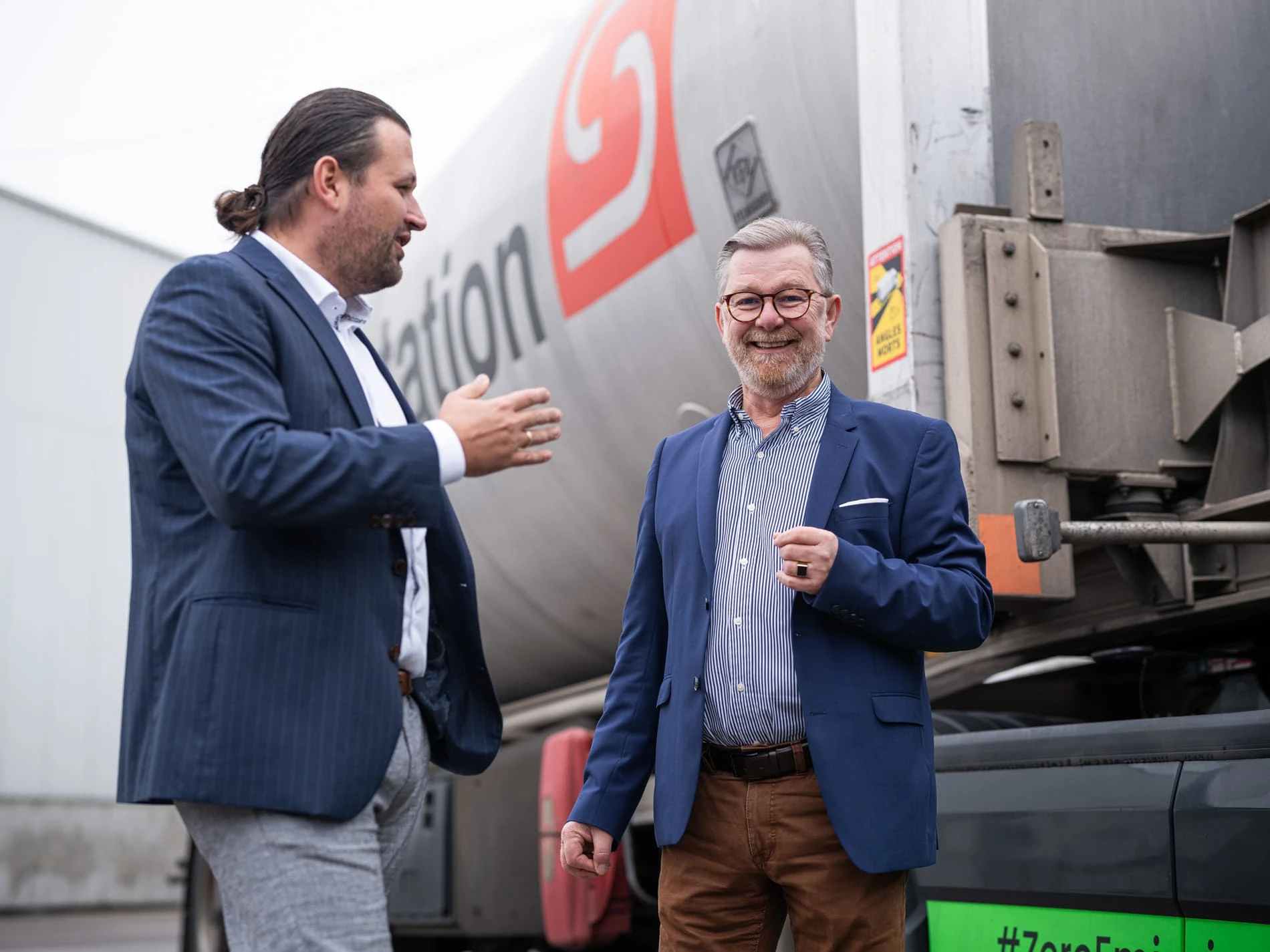 Yannick Fahrhand (ETK) und Holger Kompfe (Sievert) freuen sich über die Zusammenarbeit.