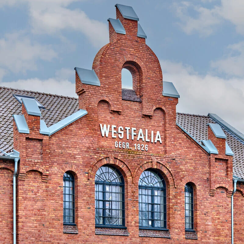 Das rund 150 Jahre alte Gebäude der ehemaligen Eisenhütte Westfalia benötigte dringend eine Instandsetzung; lange ließ sich das Potenzial des roten Backsteingebäudes mit seinem Türmchen und den gusseisernen Fenstern lediglich erahnen. Seit 2023 wirkt sie wie auferstanden: Als Coworking Space und Eventlocation lädt sie zum Arbeiten und Feiern ein.