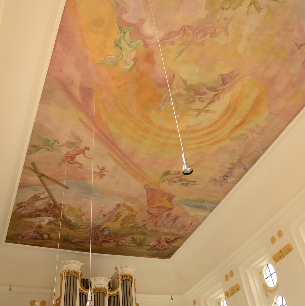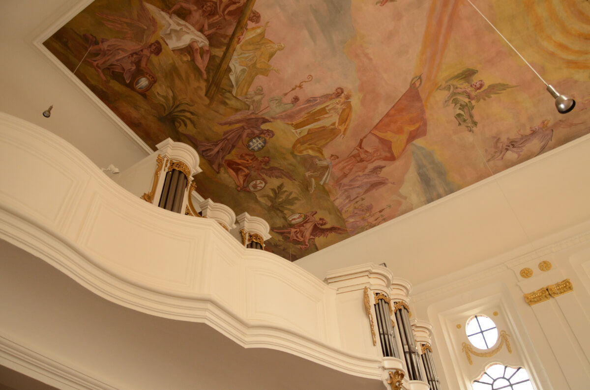 Hangleiter und das Institut für Steinkonservierung schlugen vor, das Deckengemälde durch einen Austausch des kompletten Putzträgers inklusive Rückverankerung zu sichern. Dabei sollte eine Stützkonstruktion den malereitragenden Deckenputz von unten in seiner Lage halten.