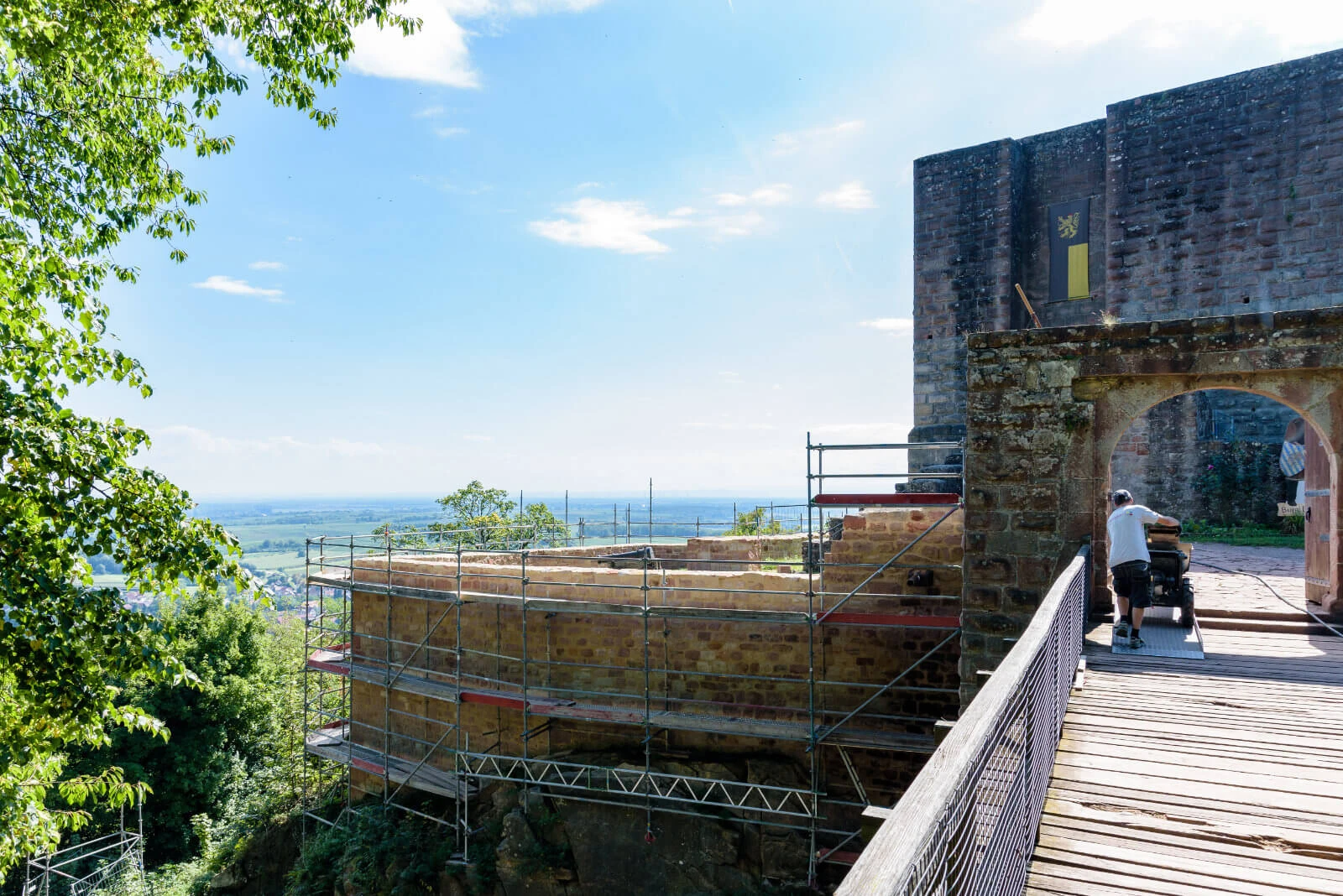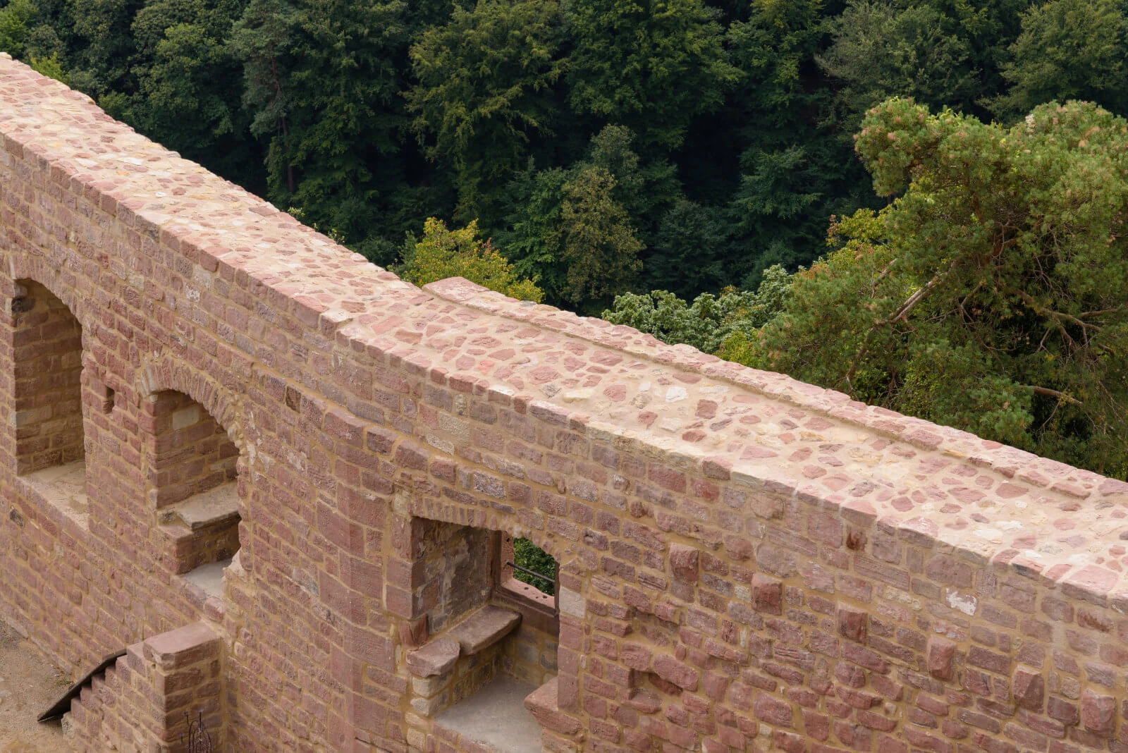 The castle ruins at Landeck are a popular tourist attraction in the Palatinate Forest near Klingenmünster – all the more reason to monitor the ruins constantly and inspect them for damage. That work is carried out by the Landeckverein e.V. society. The federal state of Rhineland Palatinate is the owner of the castle. However, the society is registered as the occupier of the castle and organises guided tours, events and facilities at the site. Working together with Rhineland Palatinate’s heritage conservation authority (GDKE), the society monitors the castle and reports any damage. This was the case for the current damage. Initially, cracks were found in the three towers on the outer ward. The GDKE inspected the areas and discovered more serious problems. An extensive survey of the whole castle revealed that urgent action was necessary.
