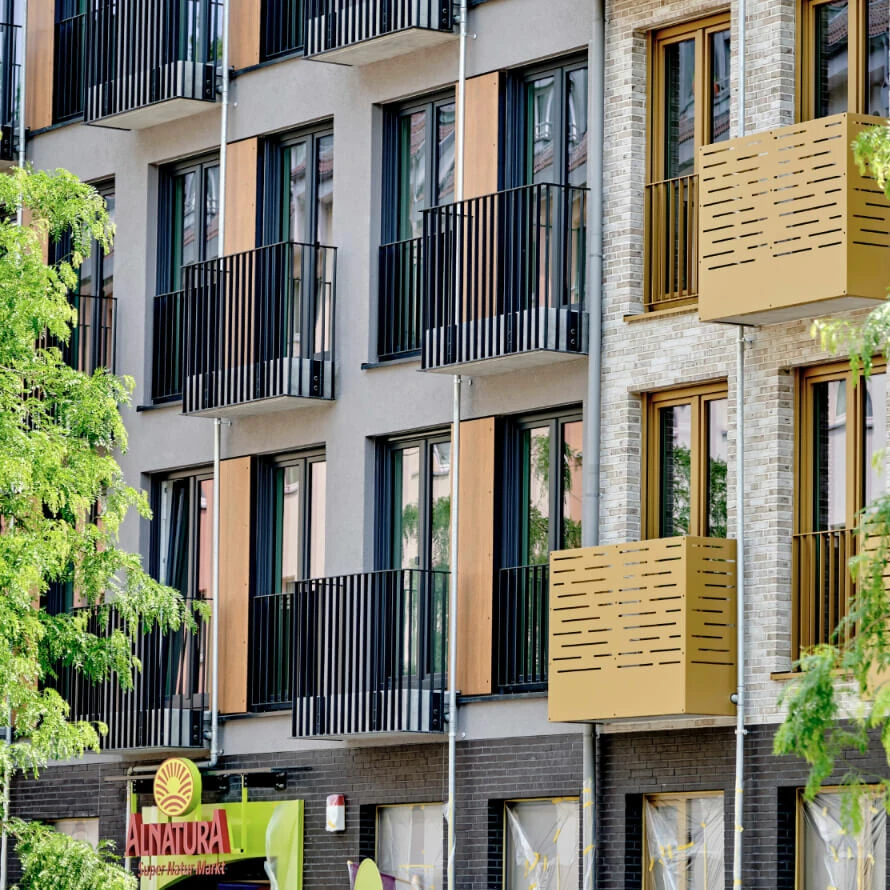 En "B-UP!" is waar het allemaal om draait. Dit is een stijlvol nieuw gemengd commercieel/residentieel project in het Nordend district van Frankfurt am Main dat toekomstige huurders de juiste weg wijst.