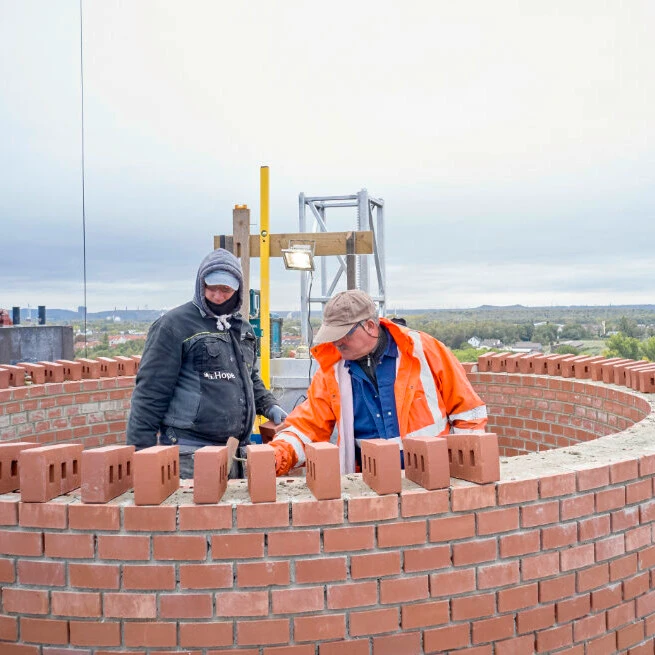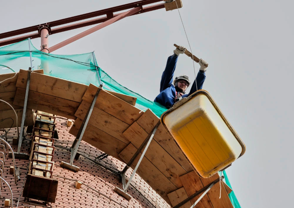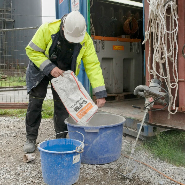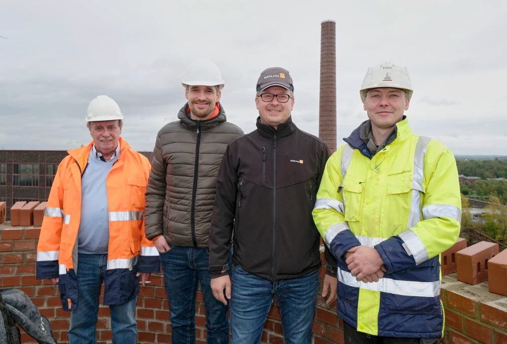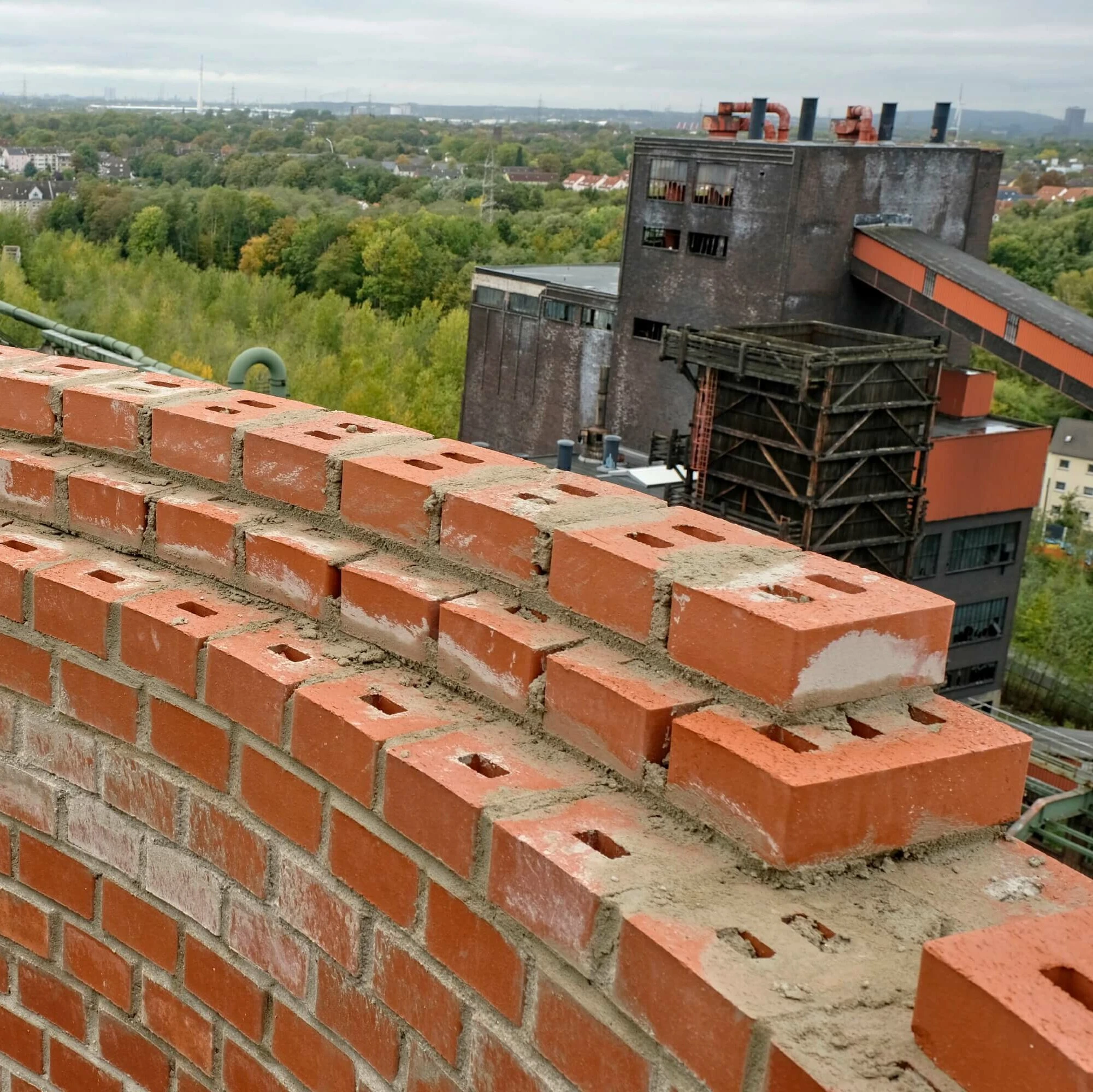 Bij de renovatie van de schoorsteen werd namelijk voor het eerst gebruik gemaakt van de nieuwe sulfaatbestendige voegmortel S-FM van quick-mix, het topmerk van Sievert SE voor voorgemengde droge mortel. De mortel maakt gebruik van de revolutionaire, nieuwe, gepatenteerde SECON-bindmiddeltechnologie, waarvan is bewezen dat deze bescherming biedt tegen uitbloeiingen en uitloging uit de voegmortel. SECON staat voor de drie attributen veilig, ecologisch en economisch. De nieuwe voegmortel S-FM was daarom het perfecte materiaal voor de gespecialiseerde aannemer Mende Schornsteinbau GmbH & Co. KG uit Lastrup in Noord-Duitsland, die met de saneringswerkzaamheden werd belast.